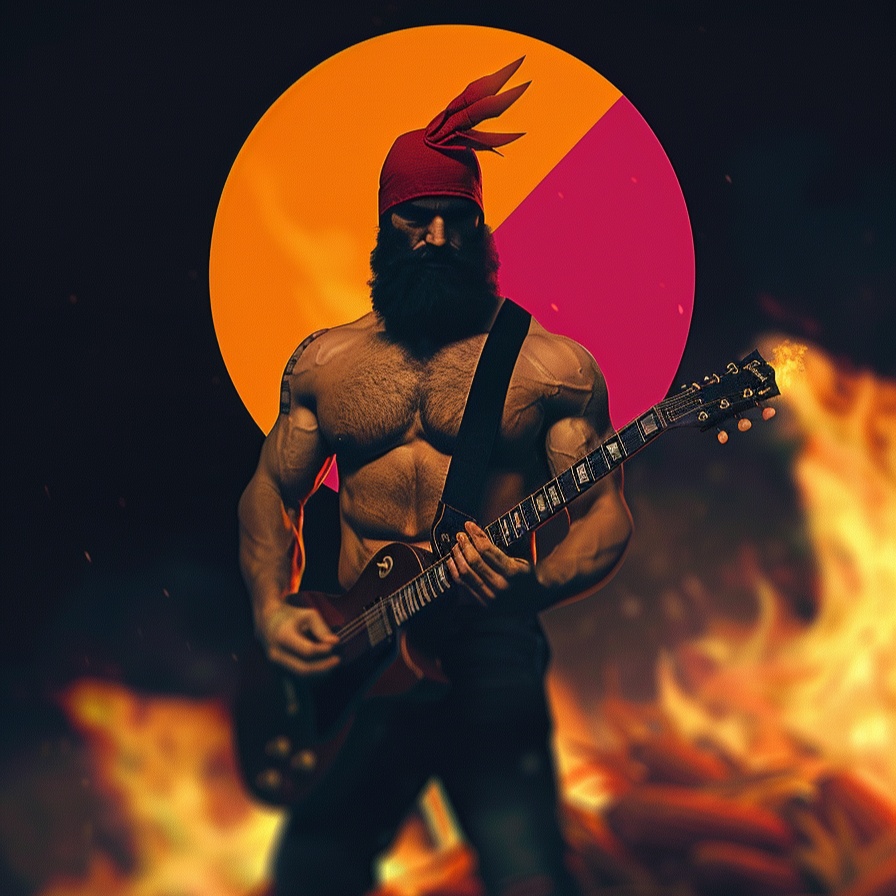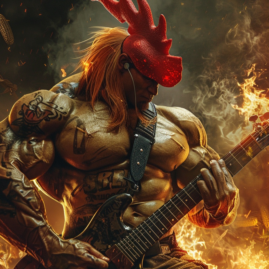 Energetic trap hardcore, guitar solo jazz hardsolo crowd chorus, loud, unison, strong beat, chest-thumping, energize
