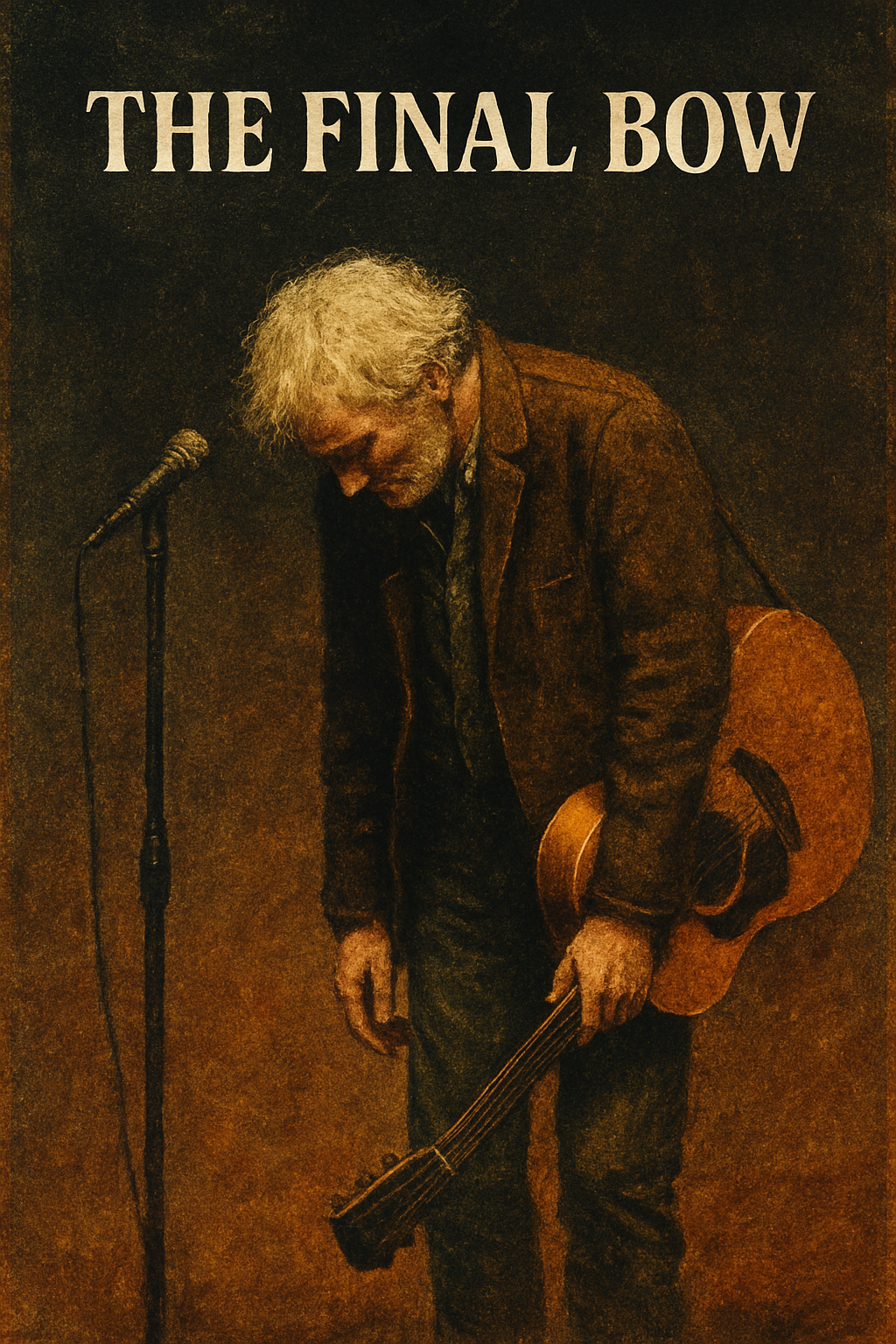 A slow, emotional piano driven ballad that blends the raw melancholy of 90s grunge with the warm, intimate storytelling of 70s folk, Tempo 75–80 BPM, minor key, spacious and cinematic, Primary instrument is soft upright piano, with subtle acoustic guitar textures, restrained brushed drums, and deep, warm bass that only enters after the first chorus, Vocals are male, worn, tender, and slightly raspy, intimate and close mic’d, with the emotional weight of aging, reflection, and acceptance, Production should feel vintage, organic, imperfect, with light tape warmth and room reverb, no glossy modern pop polish, Mood is bittersweet, peaceful, reflective, end of life acceptance, not tragic, not triumphant, just quietly final, Dynamics should build gently through each chorus, with the final chorus opening up emotionally, then resolving back to a soft, fading piano outro