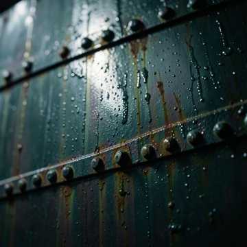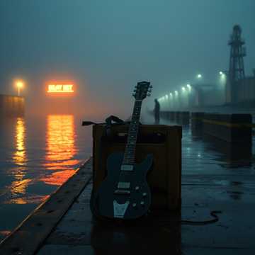 Lo-Fi Industrial Blues, Gritty Noir Jazz, Slow Heavy Bass, Sixty BPM, Rusty Metallic Textures, Distorted Resonator Guitar, Muffled Engine Thrum, Breaking Glass Soundscapes, Deep Hazy Atmosphere, Aged Analog Warmth, Sector Nine Bilge Ambience