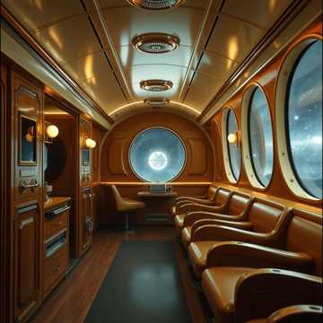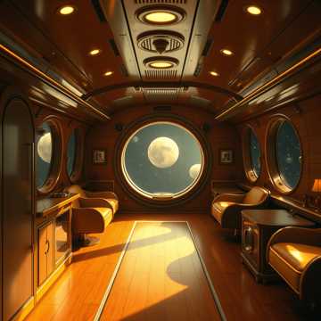Vintage Sci-Fi Ambient, Orchestral Noir, Warm Brass Textures, Analog Gear Whirring, Sixty BPM, Polished Wood Resonance, Melodic Chimes, Deep Space Opulence, Elegant Mid-Century Future, Cinematic Grandeur, Soft Mechanical Clinking