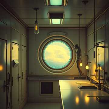 Lo-Fi Sci-Fi Ambient, Dreamy Chillhop, Muffled Sub-bass Heartbeat, Smooth Rhodes Piano, Shimmering Atmospheric Pads, Sixty BPM, Hypnotic, Ethereal, Underwater Noir Jazz, Clean Ventilation White Noise, Minimalist