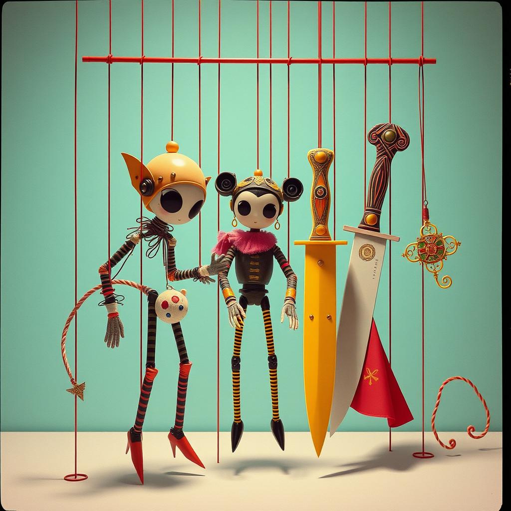 Create a theatrical, genre-blending rock song with energetic tempo shifts and eccentric flair, Blend upbeat pop-punk rhythms with cabaret-style piano, orchestral flourishes, and baroque elements like strings or harpsichord, The vocals should be charismatic and expressive, with dynamic range and a slightly sarcastic, dramatic tone, Include fast-paced, metaphor-heavy lyrics that tell a clever, emotionally charged story, The song should feel like a twisted stage play — chaotic, catchy, witty, and larger than life