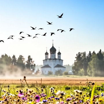 tags: Russian traditional folklore, long-drawn, slow tempo, melancholic, a cappella, choral polyphony, wide expanse, deep emotions, soulful female vocals, ethnicity