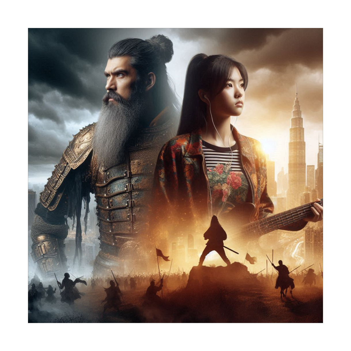 Samurai Hard Rock, Female Alto Vocal, Master Koto, Percussive Koto, Bow Koto, Rhythm Shamisen, Bagpipes, Japanese Taiko, Tsuridaiko, Battlefield Sound Effects, A dramatic and powerful song, The music is a fusion of traditional Japanese instruments and modern hard rock, capturing the intensity of a battlefield and the beauty of a warrior's heart, HI-RES, Taiwanese, expressive falsetto, delicate and slightly trembling tone, Brief breakdowns contrast explosive choruses