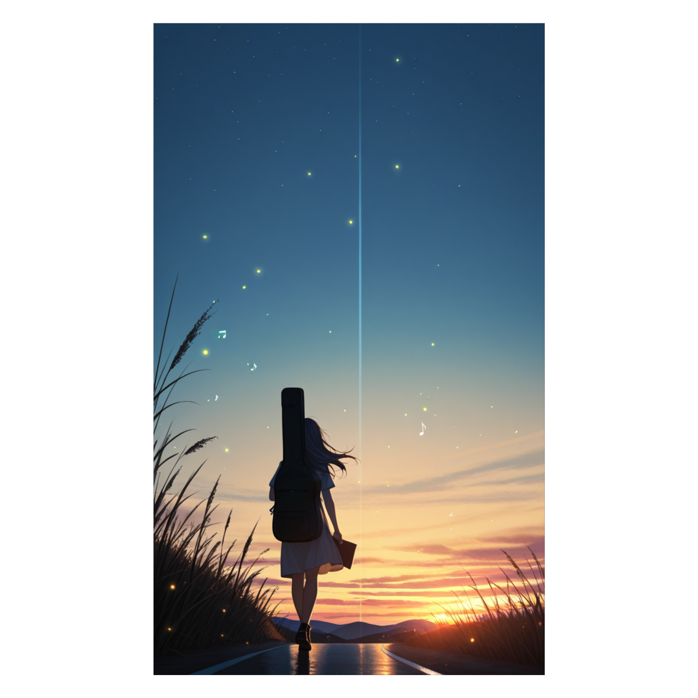 Glitch-style indie-pop rock, stadium anthem, uplifting and cinematic, expressive falsetto with delicate trembling tone, Main instrumentation: piano and acoustic guitar for chords and rhythm, koto and shamisen for melody and texture, shakuhachi and strings for atmospheric fills, taiko drums and steady kick for pulse, subtle upright bass, Verses quiet and introspective, choruses full band with stacked harmonies and call-and-response, gentle crowd energy, big reverb, sing-along, Tempo ~90 BPM, 4/4, driving and uplifting, Eric Wei