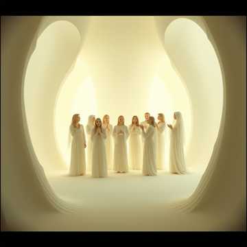 Sacred choir, 8-part chamber angelic choir, Slow, drawn out to 35 bpm, hmeditative long chords of angelic voices