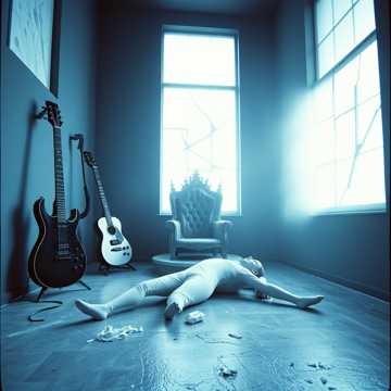 Experimental pop punk / sludge-grunge, Jazzy tone, blues, very slow and heavy tempo, gritty and dirty, dragging and repetitive groove, sludgy grunge drums with sparse hits and heavy low-end kick, deep monotonous bass dominating the rhythm, raw distorted guitar with long sustain and minimal movement, gritty and unpolished texture, cold and bleak atmosphere, emotional numbness, restrained aggression turned inward, half-spoken gritty male vocal with flat and detached delivery, close and dry vocal, minimal melody, uncomfortable stillness, weight over speed, repetition over progression, klaustrophobic underlying guitar riff
