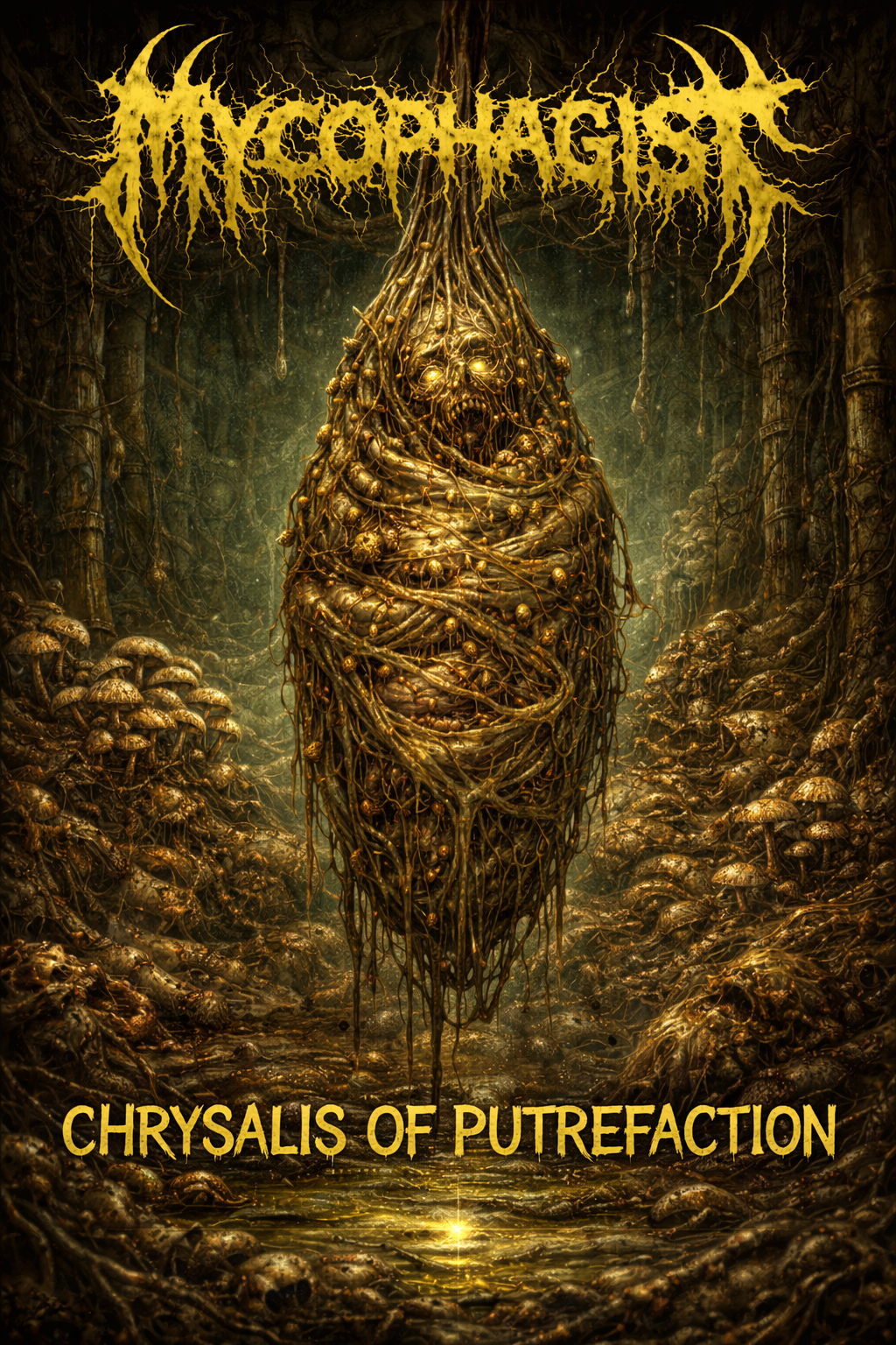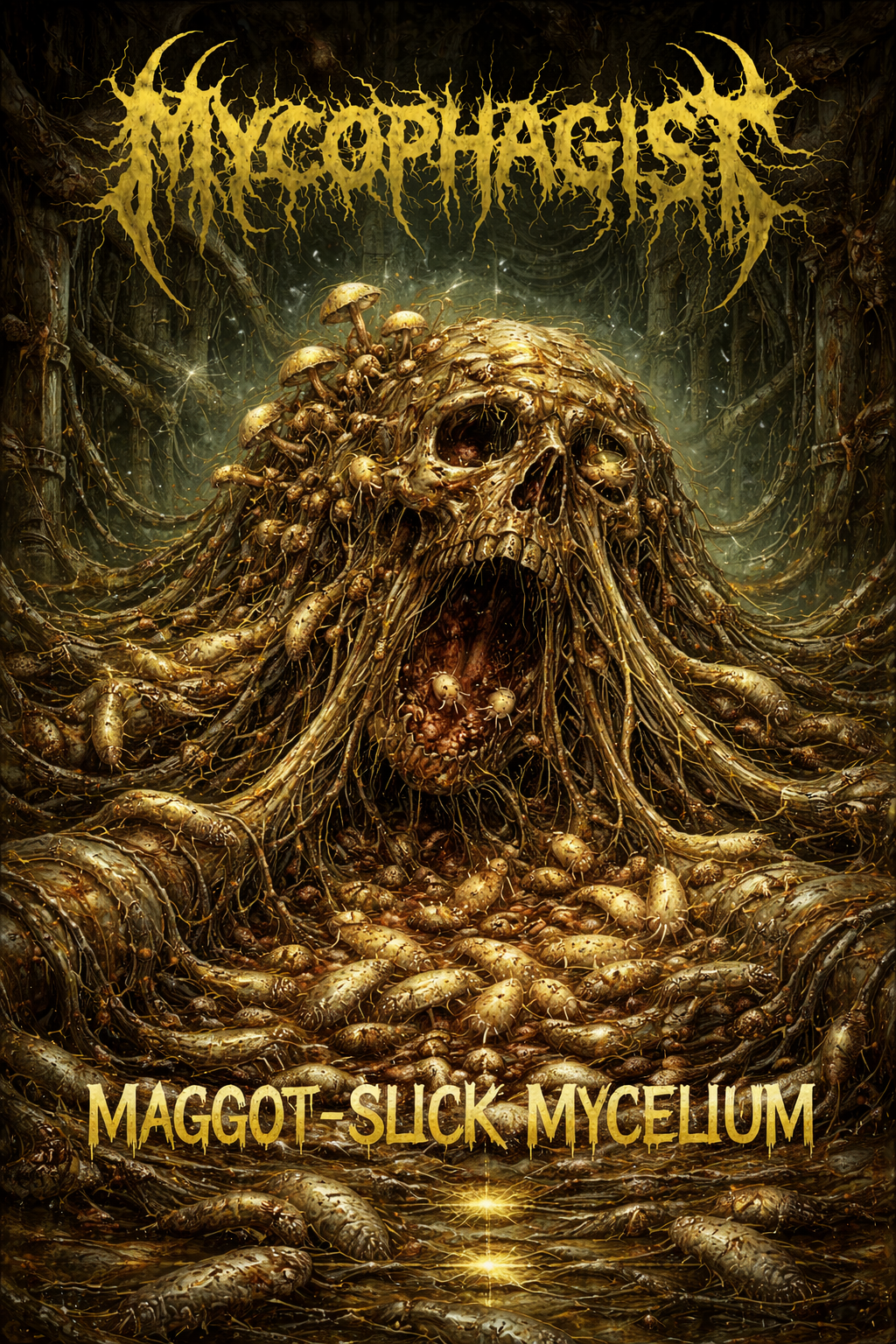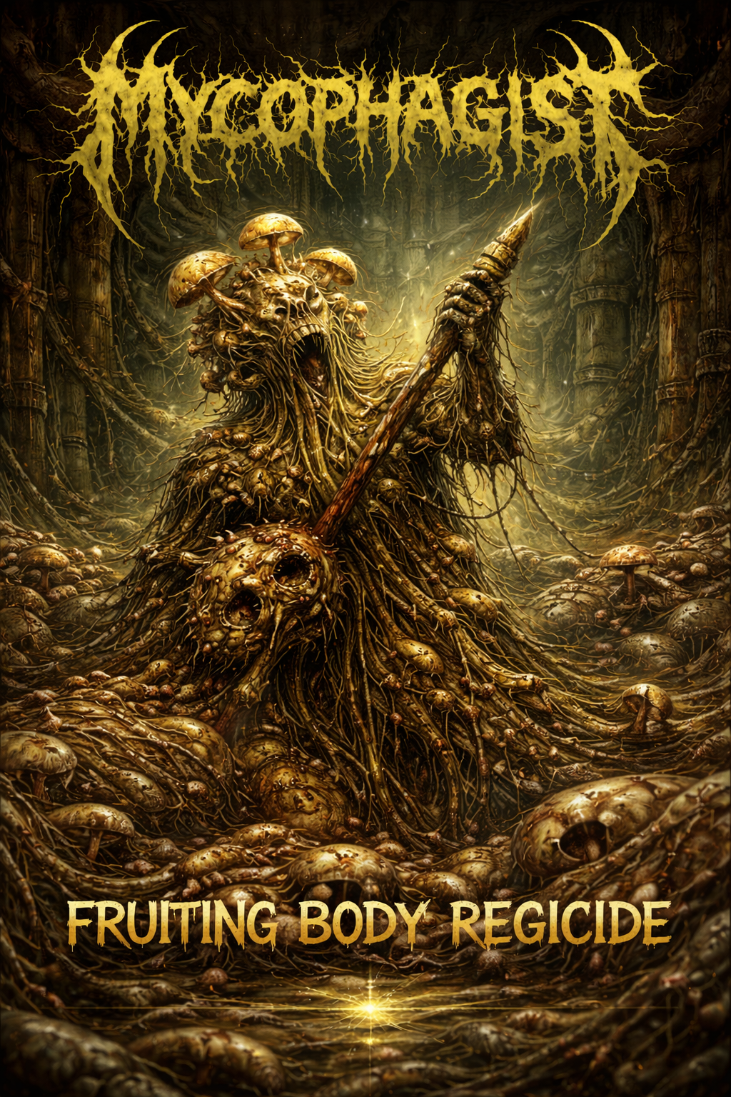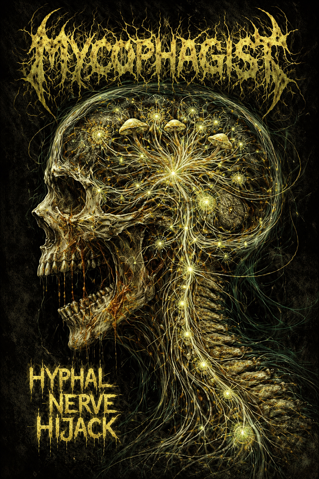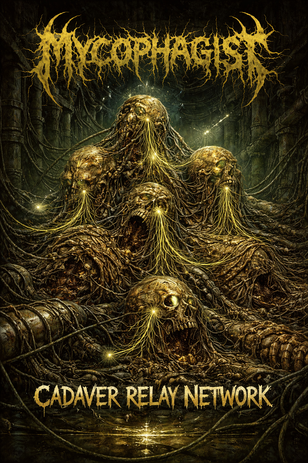 Brutal slam death about spore domination: Mycelium hijacks nerves, turns corpses into relays, and crowns decay as power—all the way to the Mycelial Throne.