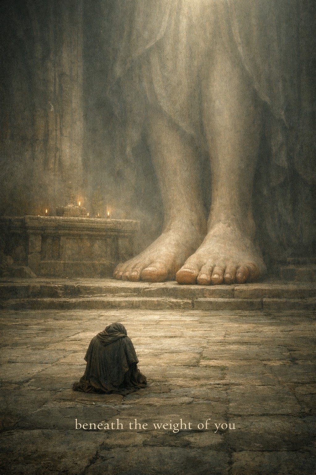 A slow-burning grunge anthem begins with clean, reverberating guitars and breath-heavy vocals, gradually swelling as rumbling bass and live drums join, Guitars explode into thick overdrive; vocals rise from fragile whispers to cracked howls, Reverb and delay evoke a decaying cathedral, with feedback and weeping bends in the bridge, Every imperfection and breath is left raw, anchoring a sound of spiritual unraveling