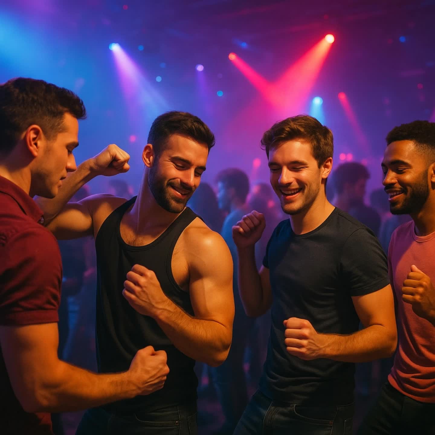 Minor-key synths and soft distorted textures provide a sensual, nocturnal atmosphere without overpowering the beat, Arrangement is minimalist but energetic, built around repetition and rhythmic tension rather than big drops, Male vocals are low, breathy, and intimate, sitting close to the listener with heavy compression, light saturation, short reverb, and subtle delay, Melodies are simple, catchy, and slightly monotone with occasional falsetto accents, Overall feel is dark but upbeat, seductive, addictive, and club-ready—late-night energy with emotional detachment, where the beat stays lively even as the mood remains brooding