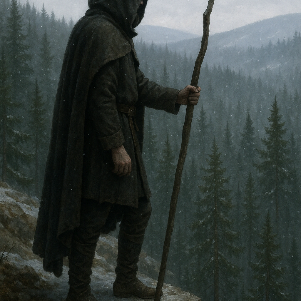Male Bardic Tale Vocals, Rhythmic Medieval lament, Deep emotional delivery, Cold atmospheric tone, Reverent and solitary, Fiddle, Nyckleharpa, Harmonica and Flute, Cinematic, studio-quality mix, cinematic production, warm analog sound, balanced stereo field, high fidelity master, deep dynamic layering, orchestral mastering