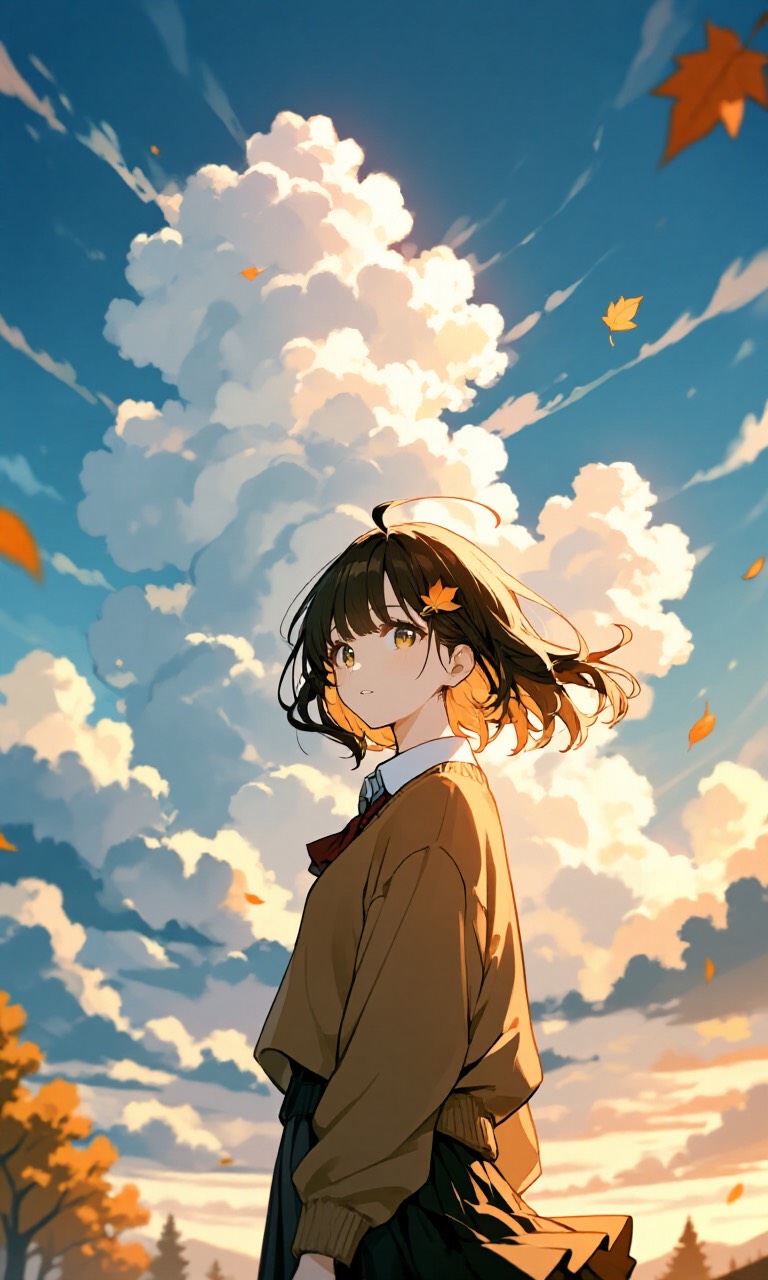 A medium tempo ballad with a refreshing and transparent atmosphere, inspired by a clear autumn sky with scale-like clouds and gradually coloring trees, Emotional female vocal in the style of Uru or Aimer, soft yet powerful, with clear and airy tone, Instrumentation: gentle piano, warm acoustic guitar, light strings, subtle percussion, and ambient reverb to create a spacious and fresh feeling, Melody should be uplifting yet calm, expressing both nostalgia and hope, Mood: refreshing, emotional, and serene, like breathing under a crisp autumn sky, Language: Japanese lyrics, poetic and heartfelt, Length: around 6 minutes