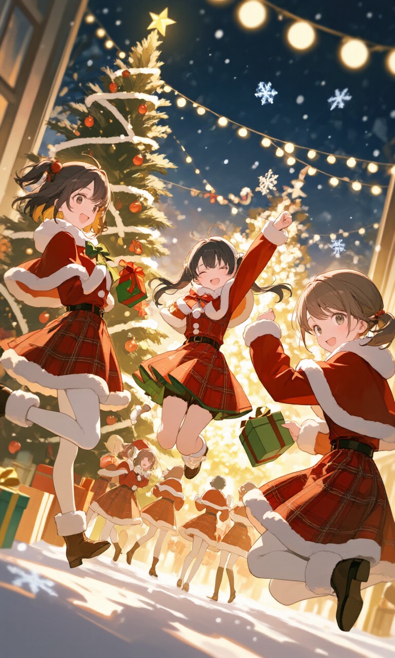 An upbeat, cute, energetic Christmas pop song with a playful and comedic tone, Fast tempo (130–150 bpm), Bright synths, jingly bells, hand claps, and bouncy drums, High-pitched, cheerful female vocal with anime-like energy, quick phrasing, and expressive delivery, Fun, catchy, and bubbly, The atmosphere is festive, silly, and joyful, like an excited Christmas party, Include short playful shouts like “hey!” or “cha-cha!” in the vibe, Big catchy chorus, lots of sparkle, and a lively mix, Style keywords:
