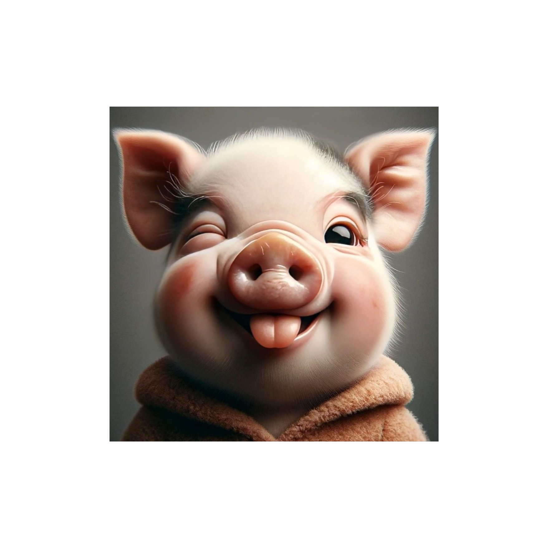 Female cartoonish vocal, bright playful style, electro-swing-house + EDM, 132 BPM, upbeat danceable, include "oink-oink", swingy piano/sax inserts, extended instrumental breaks