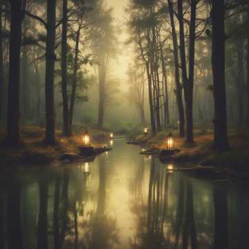 Dark Folk, 95 BPM, female ethereal folk vocal, low minor chords, acoustic guitar, cello/viola, ambient synths, subtle percussion, mystical cinematic atmosphere, haunting instrumental breaks
