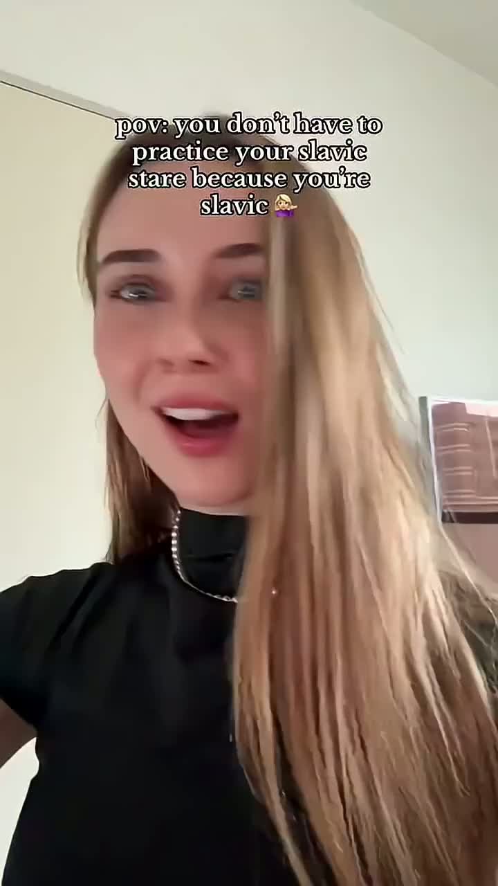Indie-Pop + Hyperpop, raspy male verses, airy female chorus, punchy synth bass, glitchy breaks, catchy TikTok-ready hooks, viral energy, dynamic beat, Slavic stare theme