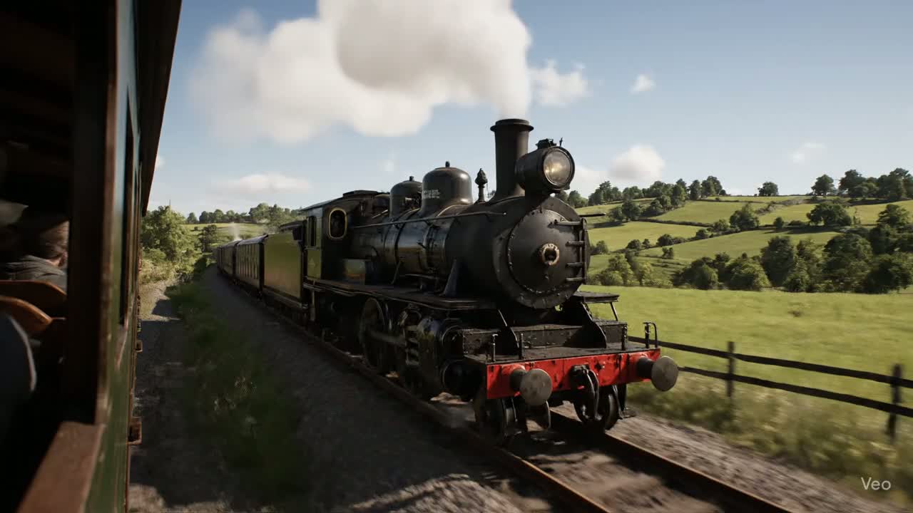The main theme is the joy of taking a ride on a steam locomotive, The first theme is a slow, swaying rhythm, with a swaying body, A minute later, it's a slow, walking pace, A lively rhythm that makes your heart beat faster and faster, The joy of sticking your head out the window of a passenger train and feeling the breeze, Singing the locomotive song with my school friends, Natural headroom’s sound, acoustic atmosphere, add acoustic like synth guitar solo improvisation, add ambience wind chimes, add upright bass, add ambience play electric keyboard, add muted trumpet solo play, rhythm arrangement Brazilian flavor, sound mood is A flow of meditative images, like 1973 fusion jazz, music time end 10 minutes
