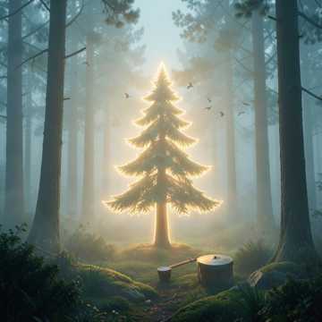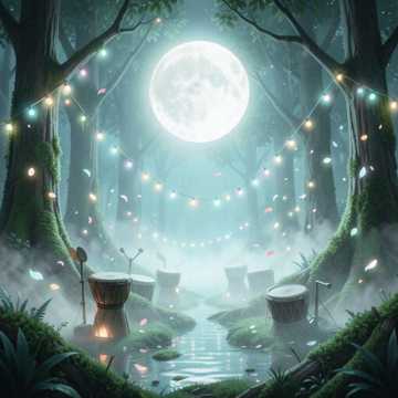 A nature-inspired festival song set in a forest, combining organic acoustic sounds with tribal rhythms, Start with ambient nature sounds (wind, birds, water), then build into a groove with hand percussion, claps, and deep tribal drums, Warm electric piano and acoustic guitar, Airy male vocal with a communal, uplifting feeling, In the chorus, add powerful group chanting and layered drums to create a feeling of unity, like people dancing together in nature, Include flute and bells for a spiritual, earthy atmosphere, The track should feel like an eco festival, blending healing, rhythm, and celebration, Emotional, organic, and immersive