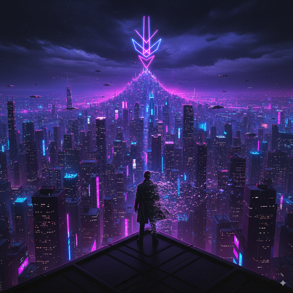 A Synthwave + R&B fusion track running 3:45–4:00, haunting yet addictive, The track is anchored by a signature 4-note synth arpeggio riff — hypnotic, heartbeat-like, and instantly recognizable, Played on a warm analog-style synth with chorus, delay, and reverb, the riff repeats in syncopated dotted 8th notes, symbolizing the city’s pulse and the protagonist’s racing obsession, It begins faint and distant in the intro, subtly underpins the verses, swells with layered synths and airy vocal pads in the choruses, disappears in the bridge, and returns in full force for the final chorus before fading solo in the outro, Smooth, soulful vocals glide over deep bass grooves, atmospheric pads, and mid-tempo beats, Verses are breathy and confessional, pre-chorus builds tension, and the chorus bursts open with soaring vocals and chant-like repetition, Mood: mysterious, nocturnal, seductive, and unforgettable — the soundtrack to a fleeting encounter that changes everything