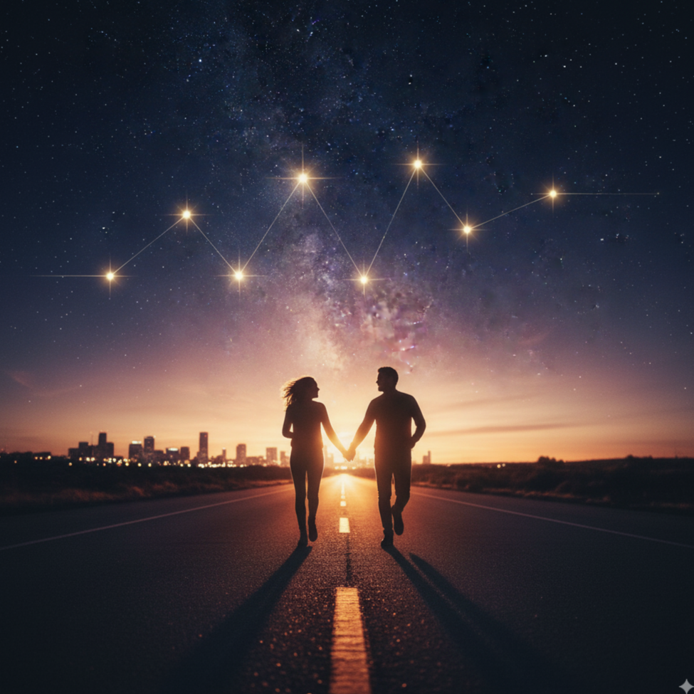 A dreamy indie-pop anthem running 3:30–3:45, built for late-night drives and festival sing-alongs, The track is anchored by a signature 4-note rising synth arpeggio, warm and heartbeat-like, instantly recognizable from the opening seconds, It begins soft and distant, layered with airy pads and shimmering guitars, then grows as pulsing drums and bass enter, Verses are restrained and confessional, the pre-chorus builds tension with rising chords, and the chorus bursts wide with euphoric gang vocals, chant-like repetition, and soaring melodies, The signature riff evolves throughout: subtle in the verses, doubled by guitar in the choruses, stacked with synths and vocal pads in the finale, A stripped-down bridge pulls everything back before the explosive final chorus, Mood: nostalgic, freeing, bittersweet but hopeful — the sound of two souls escaping the noise of the world and discovering freedom together