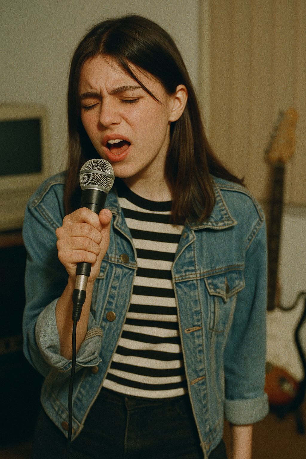 Instruments: Cheap-sounding synths, drum machine with lo-fi snare, crunchy guitar stabs, retro vocal chops, simple bassline, tape-saturated reverb, Production vibe: Early 2010s indie-pop meets bedroom punk-pop