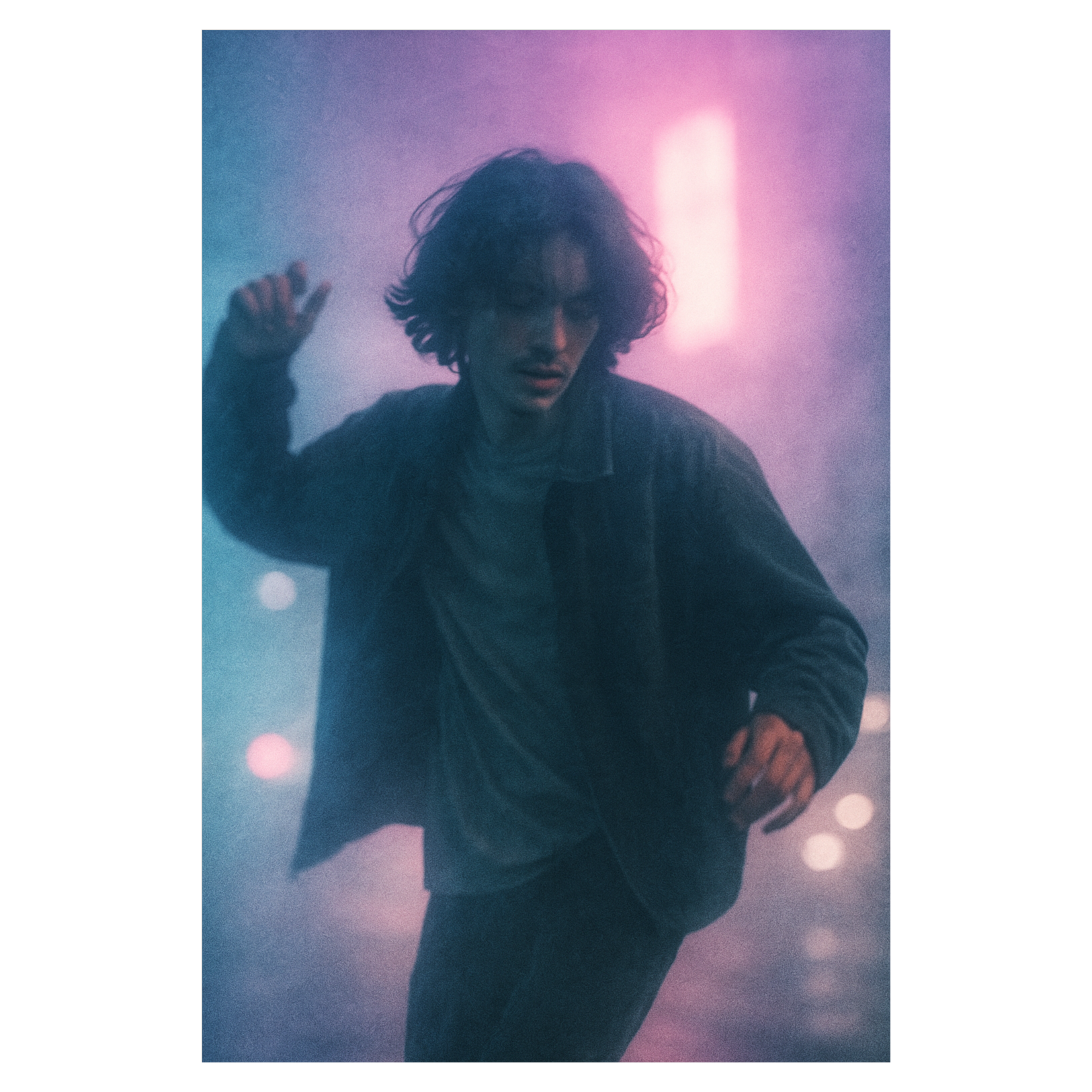 The track blends shoegaze dreamscapes with Jersey Club bounce, Verses are drenched in fuzzy guitars, heavy reverb, and whispered, distant vocals, creating a hazy, melancholic atmosphere like walking through neon rain at night, The build introduces rising percussion and echo effects, heightening tension, The chorus flips into a high-energy Jersey Club drop: sharp staccato kicks, bouncing hi-hats, sub-bass, and chopped vocal samples (“lost-lost-lost, ” “noise-noise-noise, ” “oh-oh-oh”), turning nostalgia into dancefloor energy, The hook phrases “Lost in the noise” and “Dance through the silence” repeat and chop, designed for viral, loopable moments, The outro drifts back into a shoegaze guitar wash, closing with a dreamy, cinematic fade