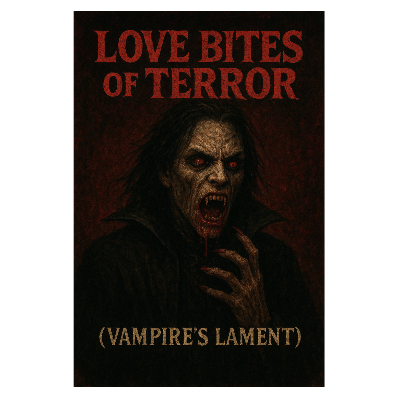 A slow, haunting piano sets a chilling mood, joined by brooding cellos and sweeping heavy strings, The verses feature intertwined male and female vocals for a vampiric duet, shadowed by distant choir pads, Distorted guitars surge in the chorus, driving the gothic horror rock/symphonic metal blend, Drums add dramatic weight, and dynamic builds lead to an intense, cinematic finale with layered harmonies and thunderous orchestration