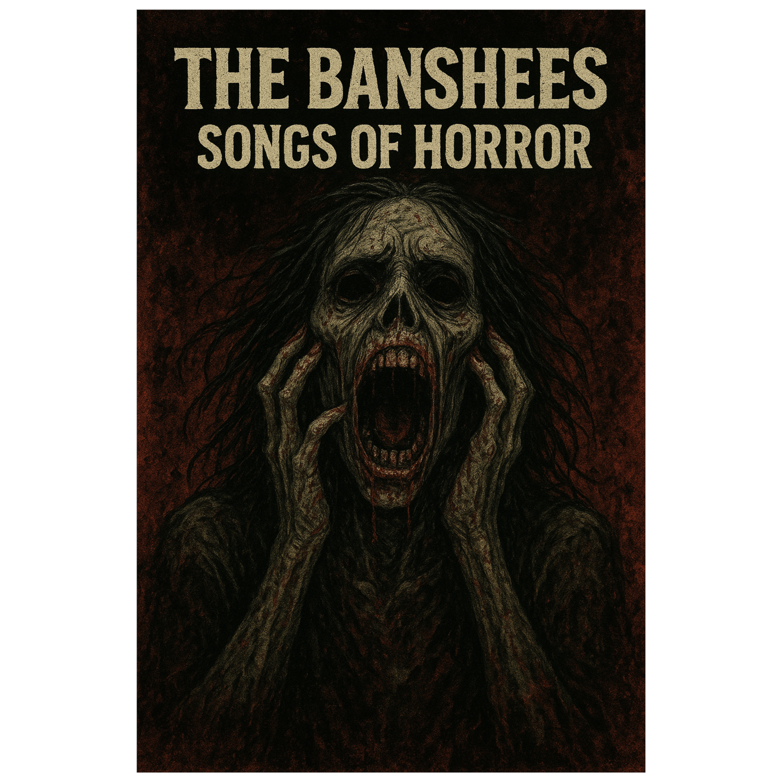Cinematic horror rock builds from echoing pianos over deep, pulsating drums, layered with reversed vocal textures and haunting choir pads, Eerie guitar swells heighten tension, while whispers and spoken phrases weave throughout dense, chilling walls of sound for a haunting effect