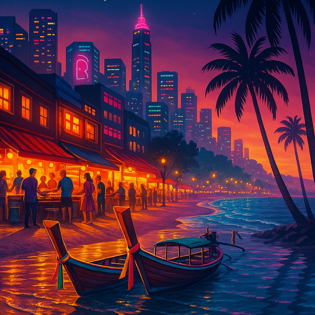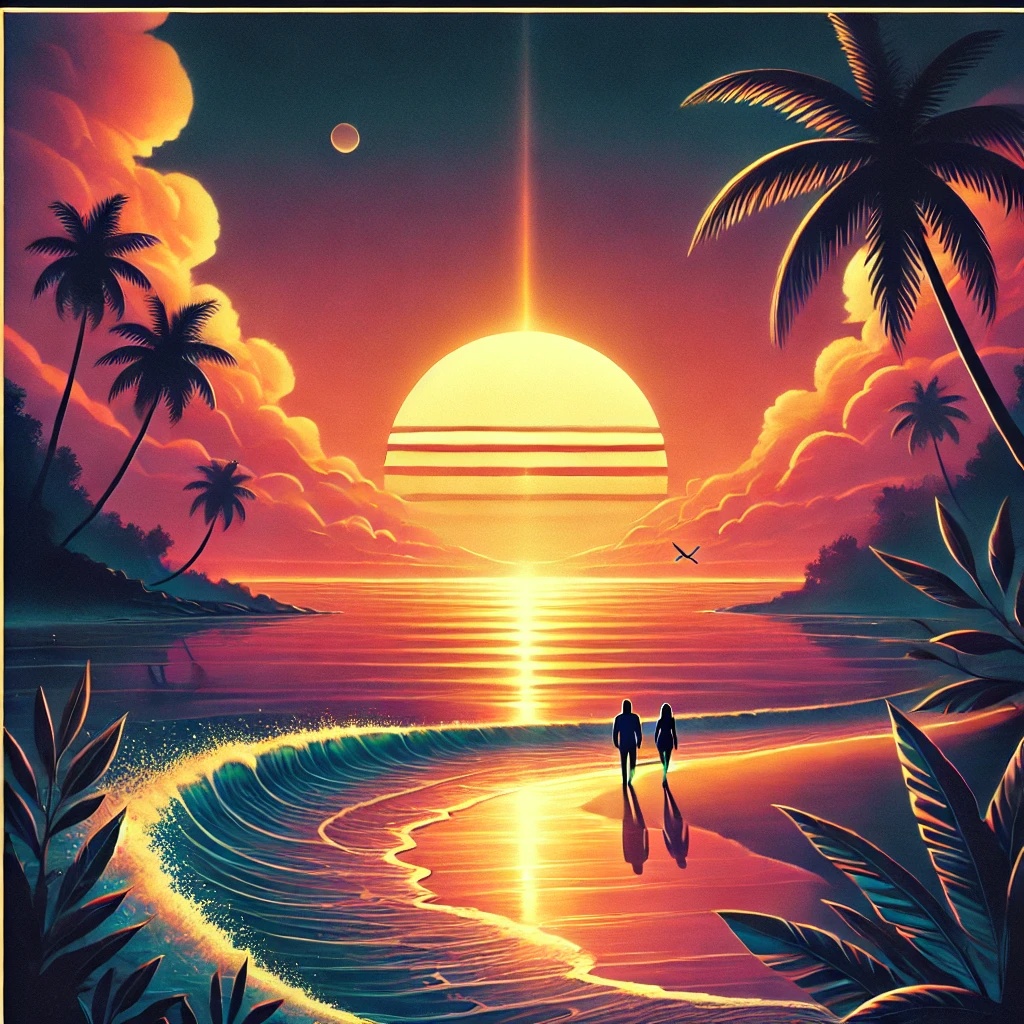 A fusion of tropical house, acoustic pop, and cinematic elements—combining warm guitar melodies, steel drums, and smooth synth waves