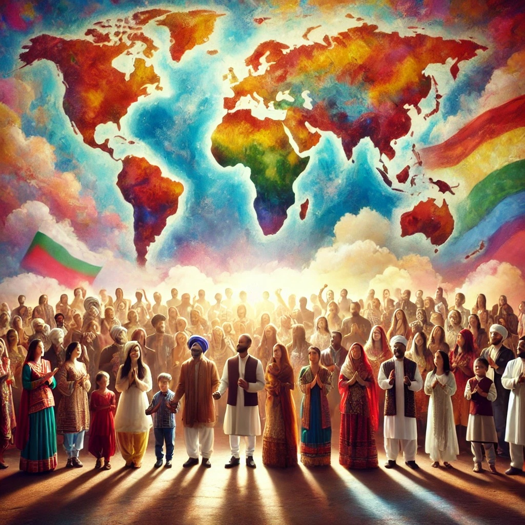 Cinematic World Anthem × Emotional Glitchcore, Tribal choirs, earth drums, synth drones, ambient strings, reversed chants, elemental FX, deep bass, grand rise, soulful glitch textures
