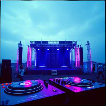 Beginning clapping and cheering at an outdoor festival, the DJ introduces himself, then lays down a giant beat, Cinematic trip-hop as the backbone; scratch-forward DJ performance layered on top; punchy loop-driven big-beat drum engine, Start with dusty, syncopated drums and broken-signal bleeps → resolve into a confident full-time breakbeat with perceived double-time hats, Ultra-low resonant sub (bloom on downbeats), analog pad drones, tape-wobble keys, orchestral/choir swells only at lifts, Turntablism as lead: transform/chirp/flare/crab patterns on short vocal one-shots; tasteful backspins, cue bleeps, vinyl patina, authentic cut-lag feel, Humanized timing (no hard quantize), velocity variance, 1-bar breath mute before big drops, Mood: noir-futurist, rebel-optimistic, festival-scale, 4/4, ~96 BPM, minor with bright color tones, End widescreen and triumphant