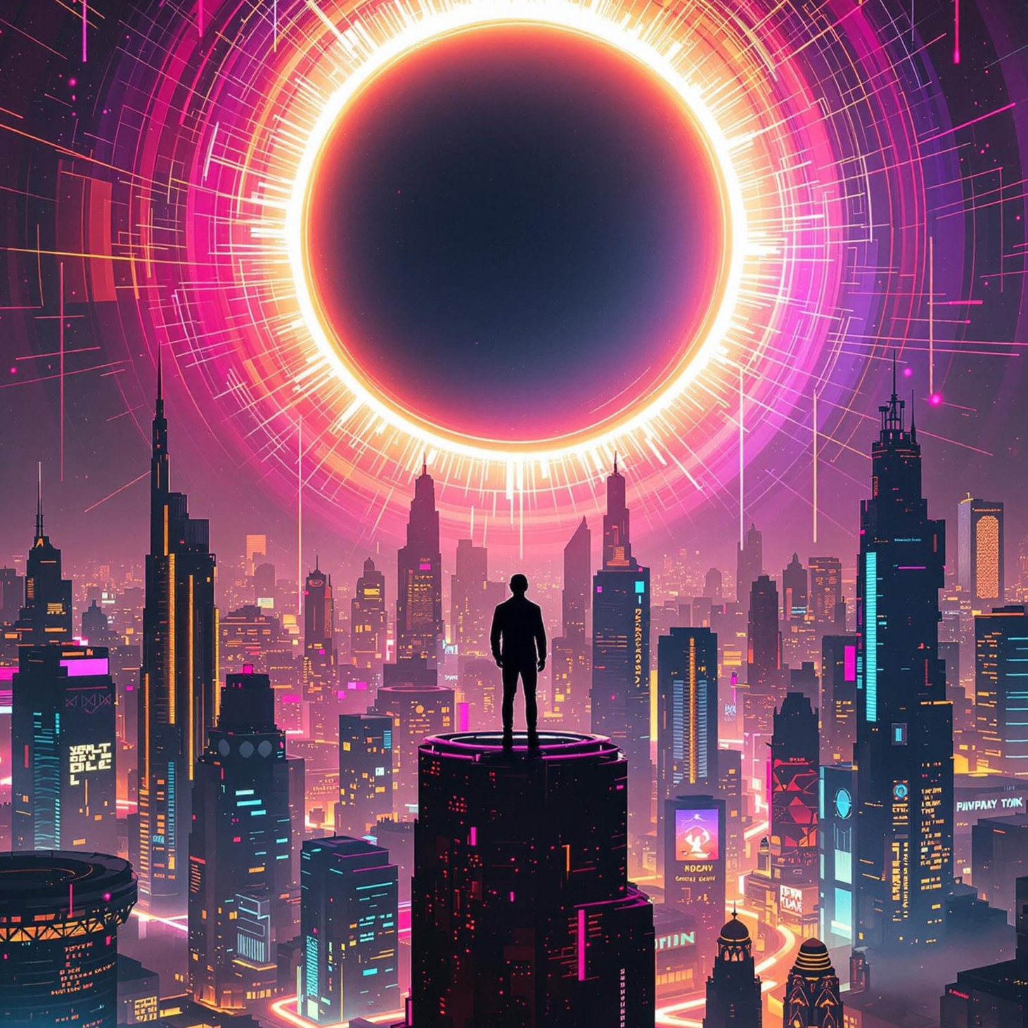 Neo-Future Wave, fusion of cinematic synthwave and hyperpop, 160 BPM, emotional storytelling, glitchy vocals, heavy bass drops