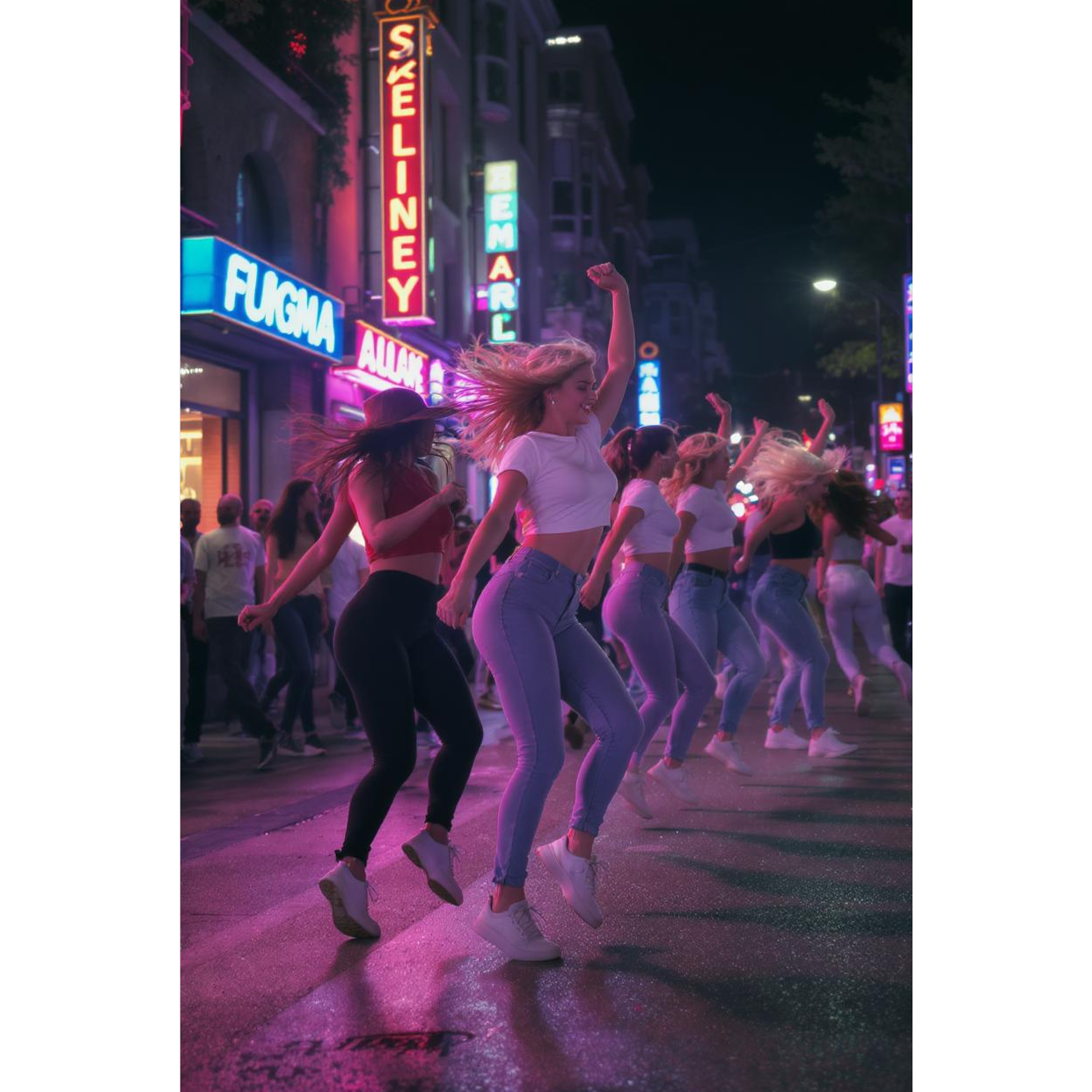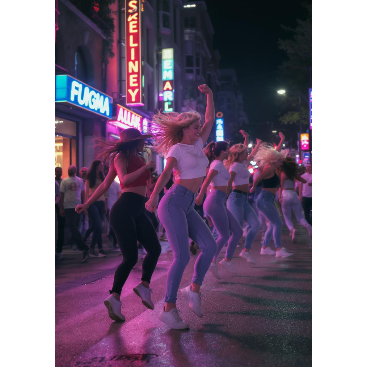 Shuffle dance EDM song with energetic rhythm, modern synths, and club vibes, Bouncy bassline, perfect for party atmosphere
