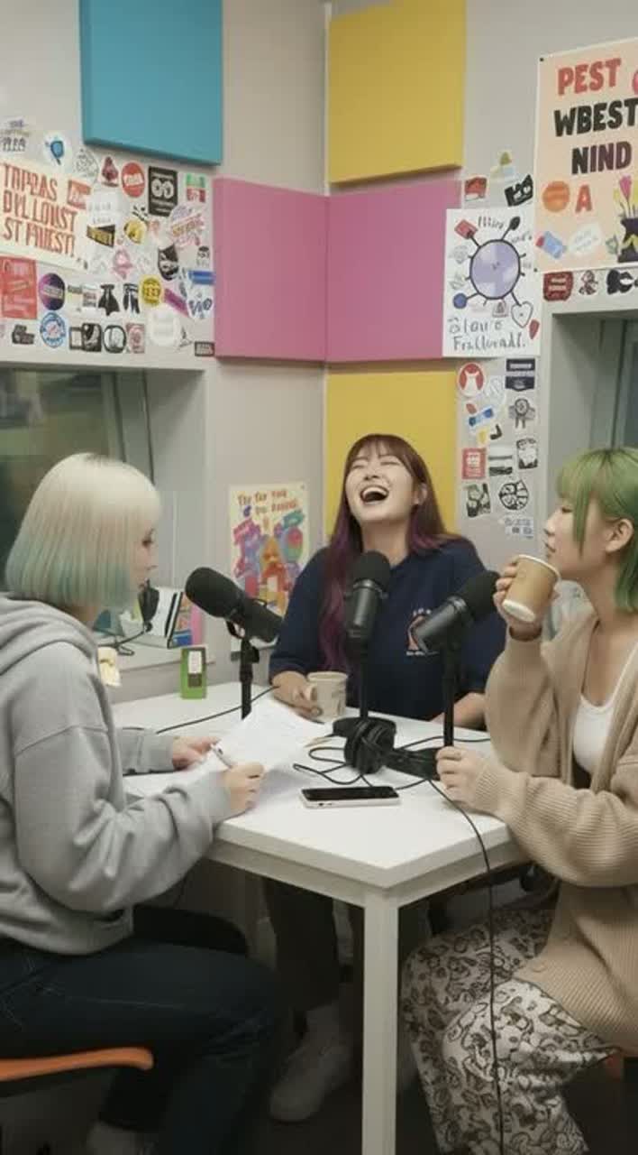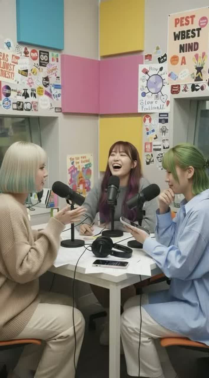 This is a podcast, spoken word podcast intro, three distinct female speakers, clearly separated voices, alternating speakers, different vocal personalities, one cool and calm, one gentle and warm, one energetic and cheerful, radio-style conversation, dry spoken vocals, no melody, not a song, ‑singing singing singing singing melodic vocals melody chorus hook verse rap beat rhythm harmony ad-libs autotune reverb delay background music instrumental pop song EDM