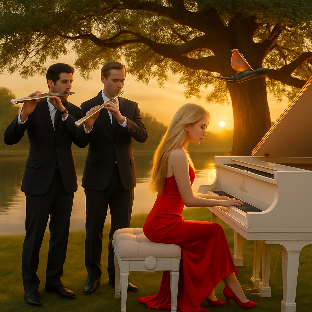 orchestral, flute, beautiful, harmony, grand piano, slow, simple, romantic, classical