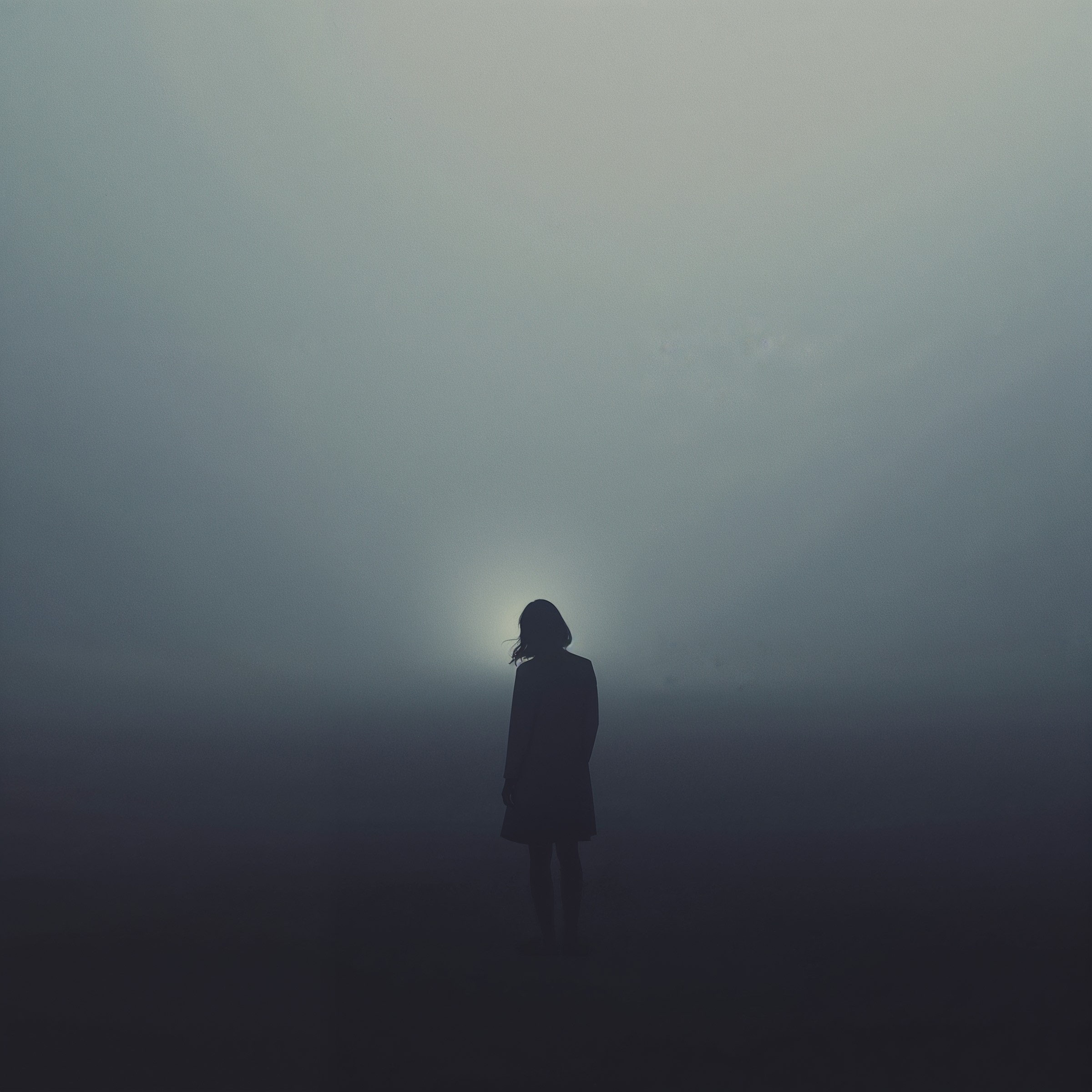 Slow, deeply emotional ballad with a heavy, exhausted female vocal, Soft trembling tone, breathy sadness, quiet breaks in the voice as if carrying the weight of a long inner journey, Minimal piano with low, hollow chords; distant tremolo guitar; dark ambient pads that rise and fall like tired breathing, Subtle rumbling texture under the vocals, no percussion except faint heartbeat pulses, Tempo 50 BPM in D minor, Atmosphere: heavy sorrow, existential depth, emotional exhaustion — a voice at the end of a long psychological path, fragile, honest, and quietly accepting