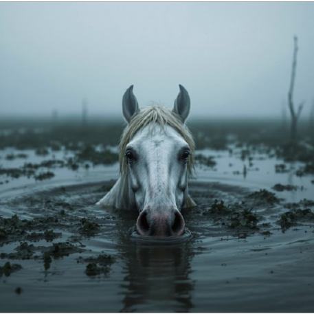 69hz - The Swamps of Sadness-Doom‑leaning ritual tempo with wet, dragging guitars and drowning ambience, 68–74 BPM in D minor, Guitars are soaked in reverb, muddy, and slow, with every note bending downward like sinking weight, Vocals are soft, broken, and vowel‑stretched until they decay, Field recordings of swamp water, distant thunder, and slow bubbling mud, Submerged phonetic murmurs and one emotional phonetic scream echoing a creature sinking beneath the surface, No climax, no rise — only surrender, heaviness, and emotional erosion, The mood is hopeless, ritualistic, and waterlogged, as if the swamp itself is pulling the listener down
