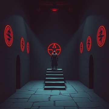 Industrial‑ritual hybrid, 98 BPM, Mechanical groove, sub‑heavy bass, muted percussive guitars, glitch pulses, filtered arps, static artifacts, Linear escalation, no chorus, no drop, Pressure over drama, Spoken fragments only, low‑register, breath‑driven, Silence as gravity, Cold, focused, coiled, Groove is the hook, heavy baritone vocals, pulsing rhythms, dreamwave, Grigorian, death metal, death choir, doom, horror