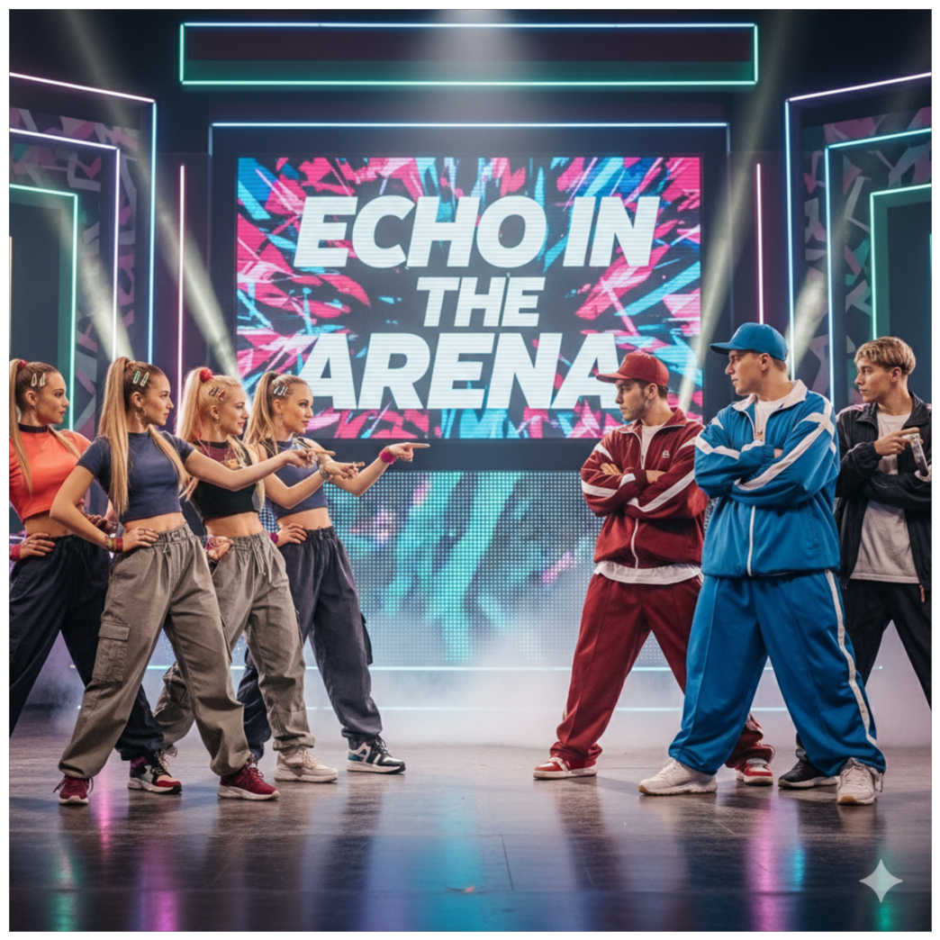 K-Pop, Studio Mix, Studio Quality, Tempo 108 to 118 BPM, Fm or Dm, Groove: tight funk kit, punchy kick, snappy snare, offbeat hats, layered 808 claps, tambourine in choruses, Bass: percussive slap plus synth sub, locked to kick with light sidechain, Guitars: clean chanks and 16th scratches, subtle wah in fills, Keys: clav and Rhodes, plus Juno or DX7 plucks, Horns: two trumpets, tenor and bari sax, short unison stabs and call response lines, Vocals: Female Trio, soulful lead, stacked triads and gang shouts, brief rap bridge, tight tuning, fast comp, airy top, FX: EDM style risers, reverse swells, filtered noise, Structure: intro hit, verse, pre, big chorus, post hook, verse two with new perc, breakdown, key lift up one for final, Mix: tape sat, parallel drum comp, 1, 2 s bright plate and tight room, bus glue 2 to 3 dB, master loud but clean around minus 9 LUFS, noise, background noise, male voice, male vocals