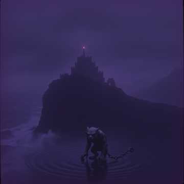 Cinematic dark art-rock with male vocals, reverb-soaked guitar swells, and tom-heavy drums, Verses start hushed over droning organ and distant choir pads; chorus explodes with distorted power chords, stacked harmonies, and thunderous low end, Subtle strings and taiko hits underscore the “mythic” scale, with a final ring-out that leaves the lead vocal echoing alone, dramatic