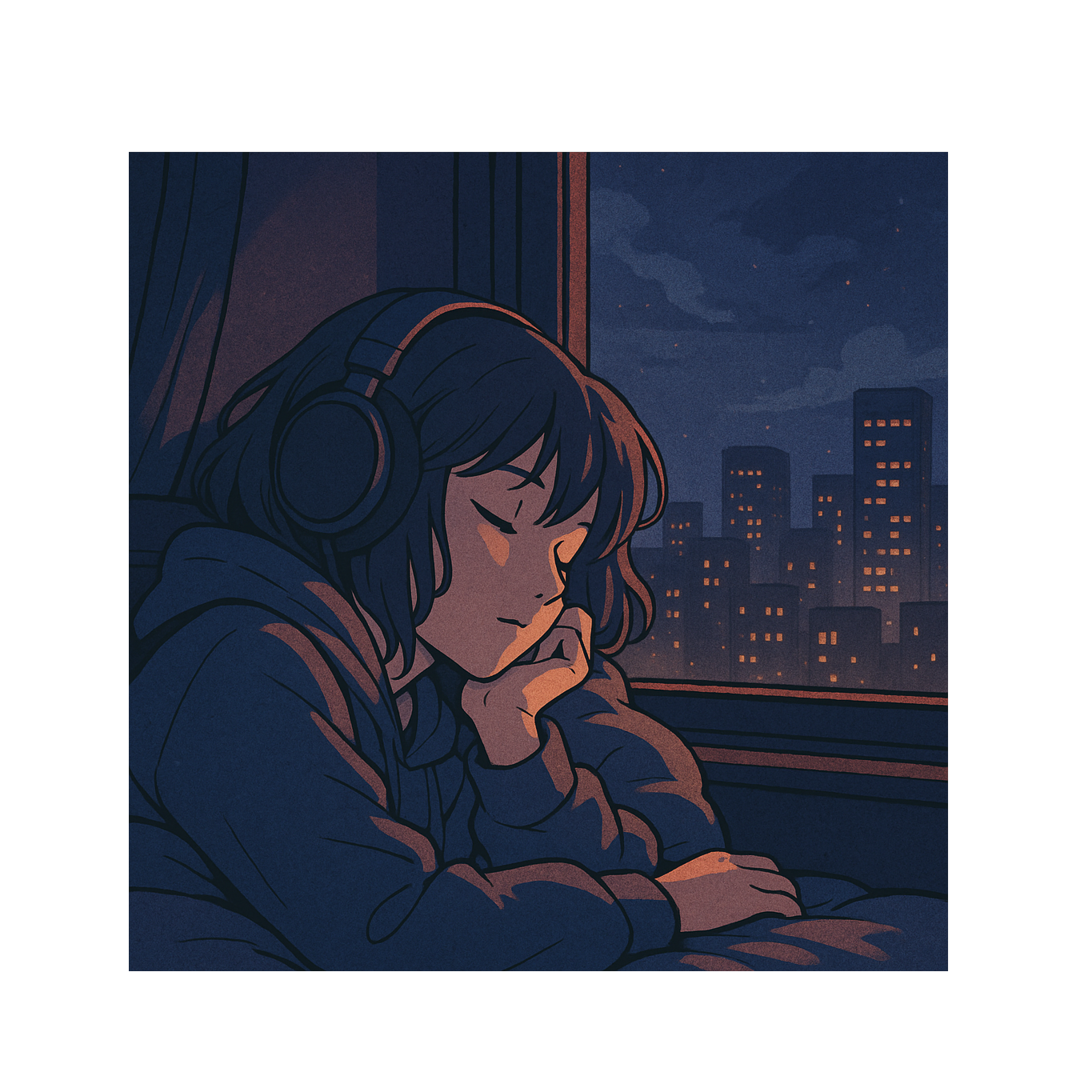 Chill lo-fi hip hop, 75 BPM, warm bass, soft dusty drums, gentle hats, dreamy electric piano, vinyl crackle, tape hiss, Smooth and relaxing night-time vibe, perfect for studying or late walks