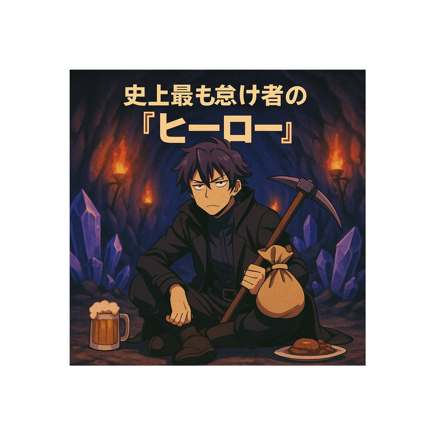 Hard Japanese Lofi × Phonk fusion, Dark, heavy, melancholic but driving mood, Fat 808 basslines, distorted Memphis-style phonk drums with swing, chopped lofi piano chords, eerie Japanese samples, atmospheric pads, Vinyl crackle layered with dungeon ambience (echoes, dripping water, chains), Tempo ~88 BPM, Vocaloid ethereal hook (reverb-heavy, chopped & pitched), Distorted ad-libs with Japanese shouts like 「退職!」「自由を!」 echoing, Vibe: exhausted treasure hunter trapped in endless dungeons, fighting for freedom from his cursed legend