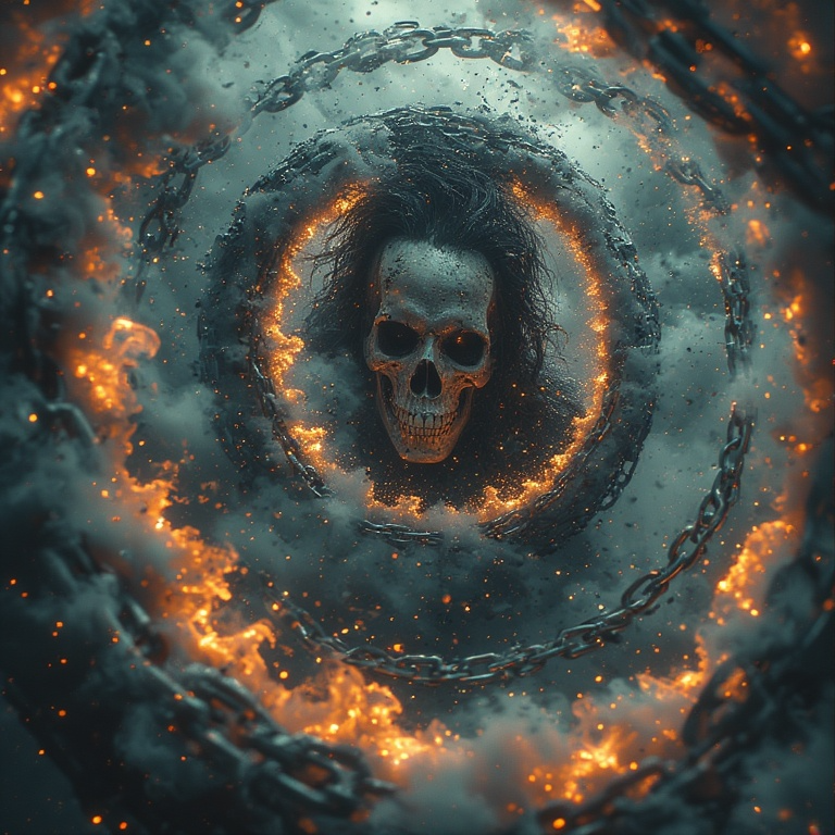 Playful dark psychedelic raw goth metal / industrial metal layered / Trent Reznor witch house ambient, complex raw aggressive metal guitar riffs and solos, goth mature deep male vocalist raw aggressive deep echoes / seductive - vocal effects / layered with guttural growls, fast double bass drums with a twist of viking traditional layered industrial, melancholic, brooding, depressing, gothic hell horror