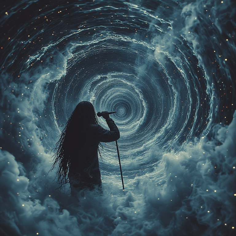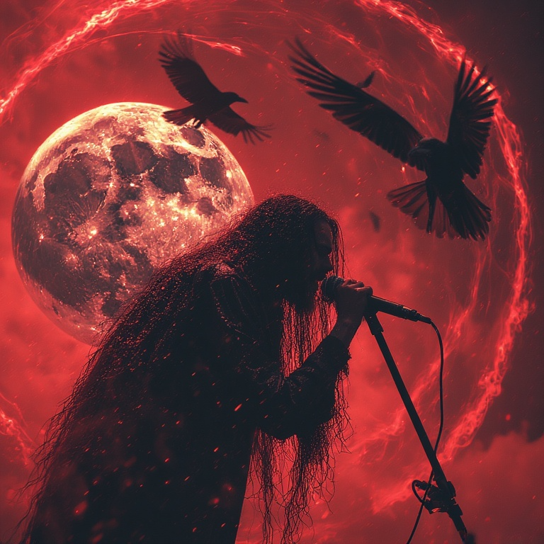 Playful dark psychedelic raw funeral goth metal / industrial metal layered / witch house ambient, complex raw aggressive metal guitar riffs and solos, goth mature deep male vocalist raw aggressive deep echoes / seductive - vocal effects / layered with guttural growls, vocal fry whispers, fast double bass drums with a twist of viking traditional layered industrial, melancholic, brooding, depressing, goth opera