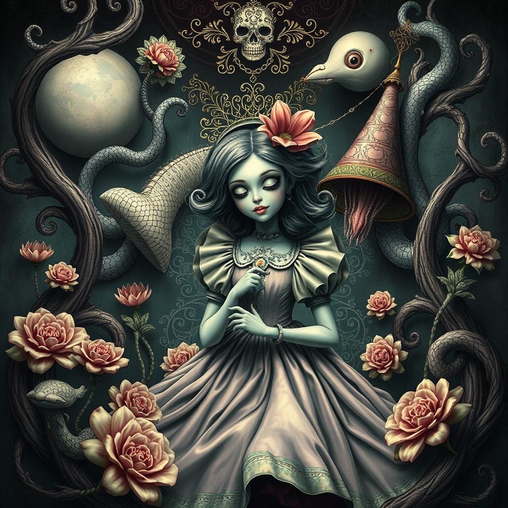 A neo-psychedelic sadcore track soaked in analog melancholia, opening with warped cassette crackle, reversed harpsichord, and heartbeat-thick basslines, The verses drift through descending chord spirals, sung in a broken falsetto layered with pitch dips and granular artifacts, Organ and tremolo guitar tremble underneath as the story unravels—each verse a dreamt death, each chorus a slow hypnosis, Refrains dissolve into harmonic collapse and fluttering vibrato trails, The bridge features backwards vocals and pitch-warped feedback loops before plunging into a ghostlike final chorus, barely audible, Feels like being trapped in an ever-sinking memory—emotional, lush, and eerily intimate