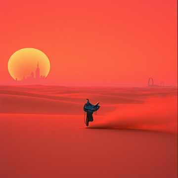A sweeping hybrid instrumental score blending neon-drenched cyber synths, tense dystopian orchestration, and dusty spaghetti-western flair, Pulsing analog arpeggios and deep digital basslines evoke the sleek futurism of cyber-grids, while tremolo guitars, whistling motifs, and distant galloping percussion conjure the lonely swagger of frontier gunslingers, Layered strings rise with bleak Hunger Games-style urgency, shaping a world of rebellion, survival, and shifting fates, Metallic percussion, bowed steel textures, and echoing taiko-like hits intensify the danger, The sound palette fuses retro-futuristic electronics, wind-swept western ambience, and epic orchestral crescendos to create a tense, atmospheric, cinematic landscape full of suspense, grit, and heroic defiance