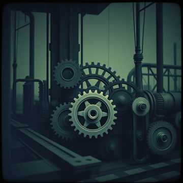 EBM industrial ambient experimental jazz fusion instrumental 120 BPM, industrial machinery samples metal percussion clanging grinding mechanical, ambient atmospheric pads dark drone textures low frequency rumble, jazz improvisation saxophone trumpet upright bass bebop phrasing, walking bass jazz swing syncopation chromatic runs, heavy distorted guitar power chords palm muting galloping rhythms double bass drums, electronic body music sequenced basslines analog synthesizers pulsing arpeggios, experimental noise textures white noise static unconventional structures, tribal drums industrial percussion metal hits, atmospheric reverb delay cavernous space evolving soundscapes, harsh electronic textures driving mechanical rhythms, synthesizer dark electronic dystopian aesthetic, experimental production dynamic contrast quiet ambient to heavy assault, cinematic atmosphere industrial jazz metal fusion, no vocals purely instrumental technical showcase