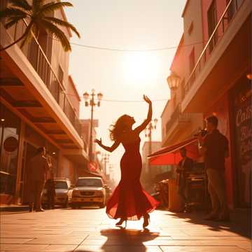 Salsa orchestra, latin beat, Uplifting Latin pop-rock anthem with a nostalgic and celebratory atmosphere, The track features a driving 4/4 rhythm at 124 BPM in the key of G Major, It opens with a melodic acoustic guitar riff and a vocal chant hook, transitioning into a verse driven by clean electric guitar arpeggios and a steady bassline, The chorus is explosive, characterized by layered male vocal harmonies, bright brass stabs, and a powerful drum kit with a prominent snare, A bridge section introduces a more intimate acoustic guitar and vocal texture before building back into a grand finale with soaring vocal ad-libs and a full horn section, Production is polished with a wide stereo field, subtle reverb on vocals, and a punchy, modern mix