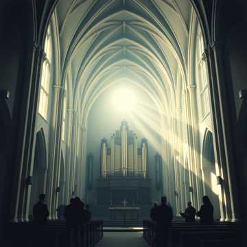 A classical calm Baltic choral piece in a minor key, featuring a full choir with prominent soprano, bass and tenor sections, The instrumentation is solely a pipe organ providing harmonic and