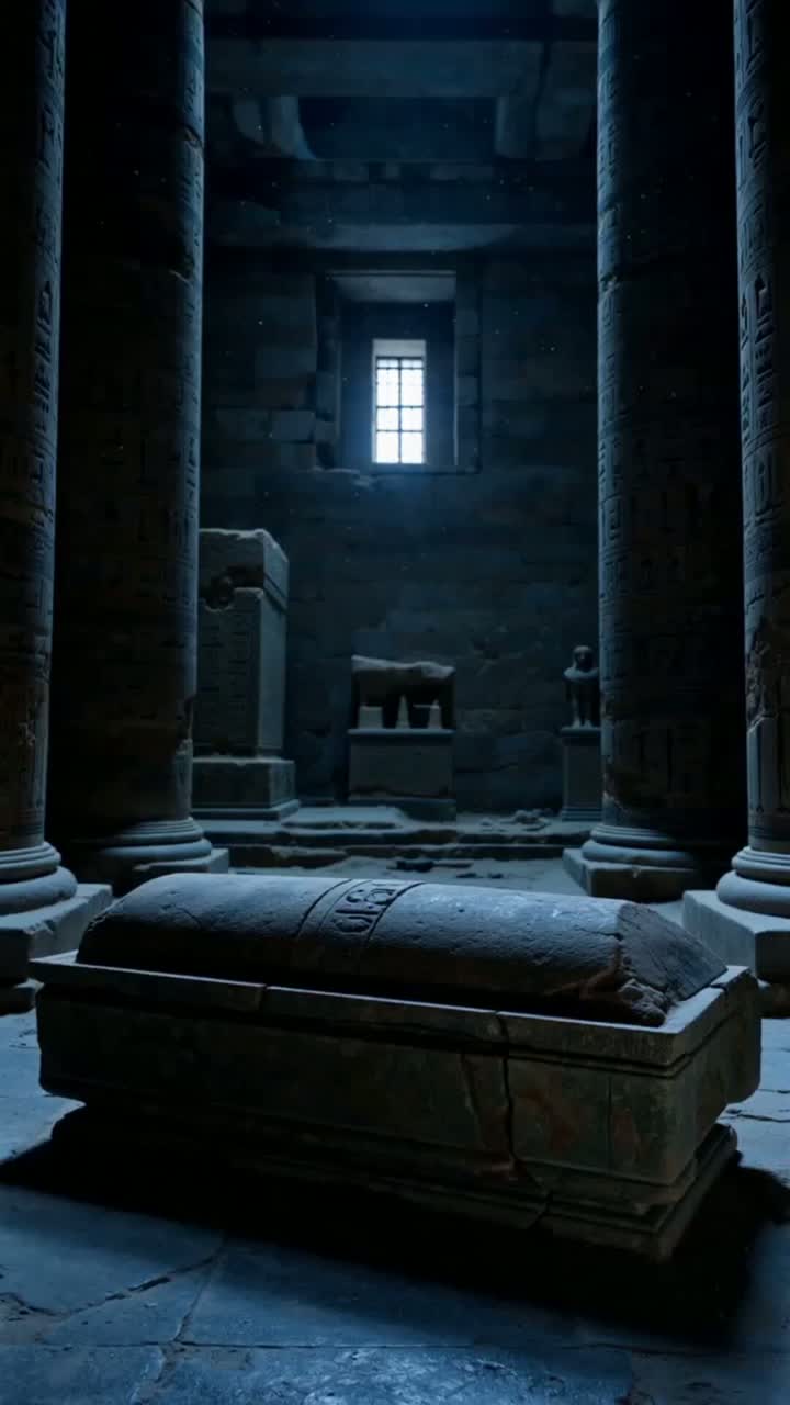 A cinematic **wind orchestra (brass & woodwinds)** composition built around a **dark, ancient, and evil atmosphere**, inspired by the silent halls of the Cairo Archaeological Museum at night, Deep brass and low woodwinds (tubas, bass trombones, contrabassoon, bass clarinet) form ominous drones, echoing like curses trapped inside stone sarcophagi, Muted trumpets and French horns whisper fragmented, uneasy motifs, resembling forgotten prayers and ancient spells, The music unfolds slowly, filled with tension and mystery, as if a **lost soul wanders among statues, mummies, and hieroglyphs**, Use **Surround Sound, Dolby Atmos, and cinematic spatial audio**, allowing tones to move through space like footsteps in vast chambers, Add subtle **cinematic sound effects**: distant stone echoes, low air blasts, breath noises in instruments, metallic valve clicks, sand-like textures, deep subterranean rumbles, and distant ghostly wind, darkness, ancient power, and supernatural presence